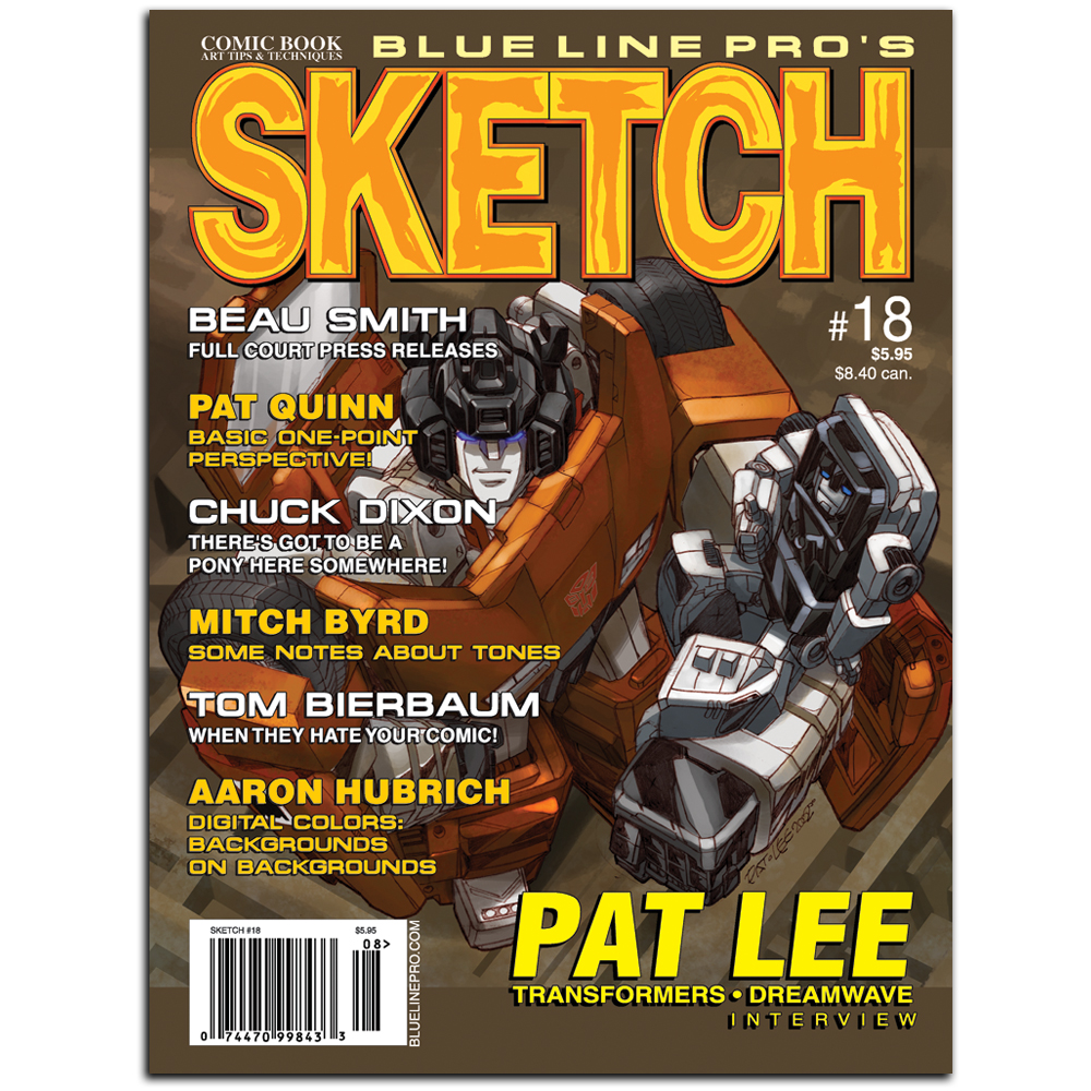 Despite their disguises, the 80s pop culture sensation Transformers has made no effort to hide its wave of comic success. Pat Lee and Dreamwave have made millions of 21st century bot-fan dreams come true. Join Sketch Magazine as Transformers illustrator Pat Lee demonstrates that there is more than meets the eye at Dreamwave Productions. Adding to the excitement, Sketch supplies instructional columns on digital coloring, penciling, scripting, etc. all the how-to both Autobots and Decepticons alike need to transform themselves into the ultimate artist, all explained in an eye-catching, informative, and attractive format.